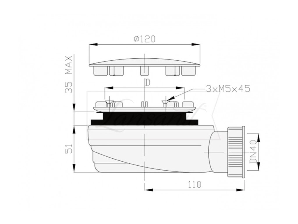 Sifon pro sprchové vaničky ze série EX. Průtok 52l/min, jednoduchá instalace, z vrchu čistitelný odpad.