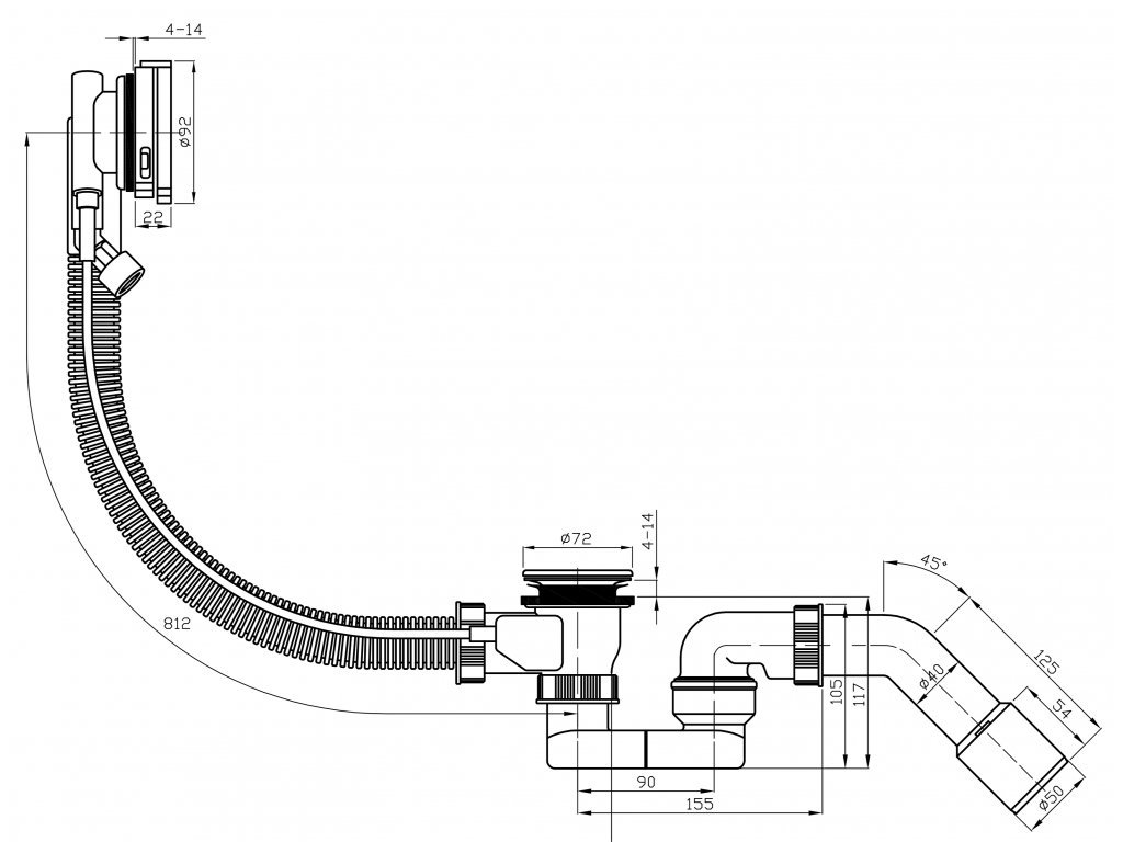 Sifon s napouštěním přepadem pro všechny typy van včetně van s dvířky. Opticky vyčistí prostor celé koupelny, protože není nutné využívat žádnou další armaturu pro napouštění. Výpusť vany lze komfortně a jednoduše ovládat díky lankovému bowdenu, který zajišťuje ovládání otáčením krytky přepadu.