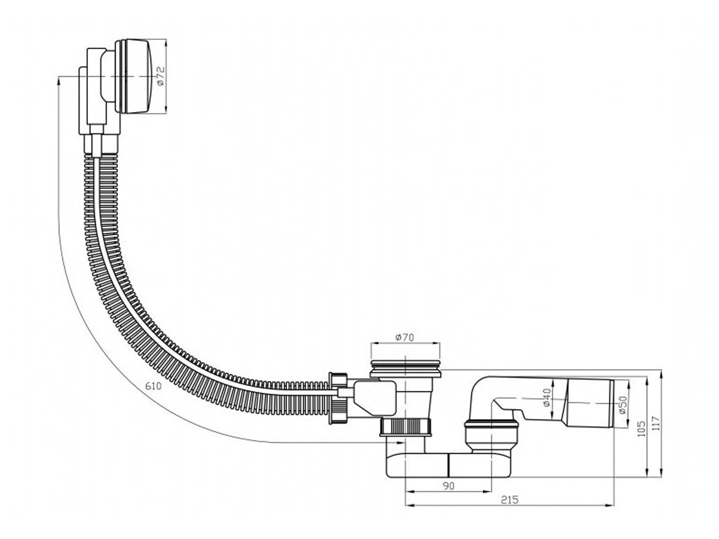 Sifon pro všechny typy van včetně van s dvířky. Výpusť vany lze komfortně a jednoduše ovládat díky lankovému bowdenu, který zajišťuje ovládání otáčením krytky přepadu.