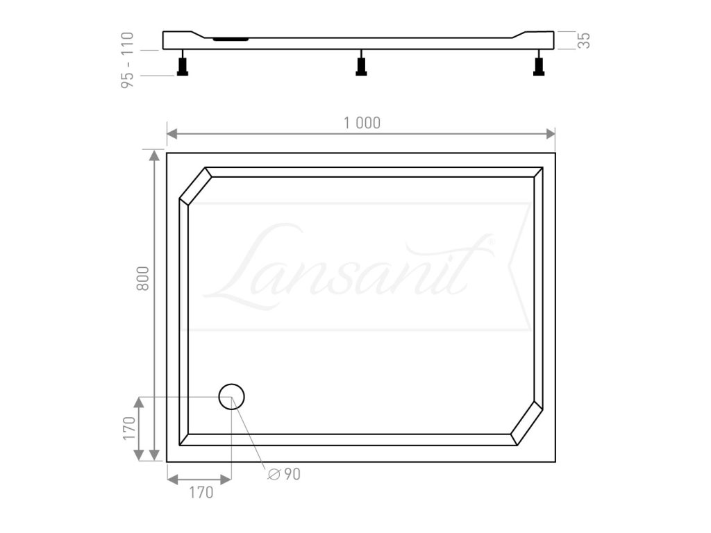 Sprchová vanička obdélníková EX 800x1000 mm, bez nožiček